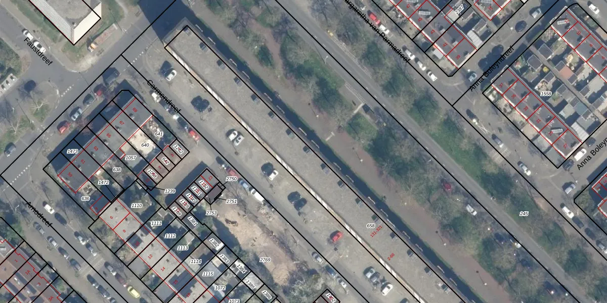 Het perceel waarop Moezeldreef 183 staat heeft een oppervlakte van 1690 m². Dit is een zeer groot perceel. De perceeloppervlakte wordt geregistreerd door het Kadaster. Gedetailleerde informatie over de maten van dit perceel kunt u vinden in het rapport Kadastrale kaart met maatvoering van Moezeldreef 183.