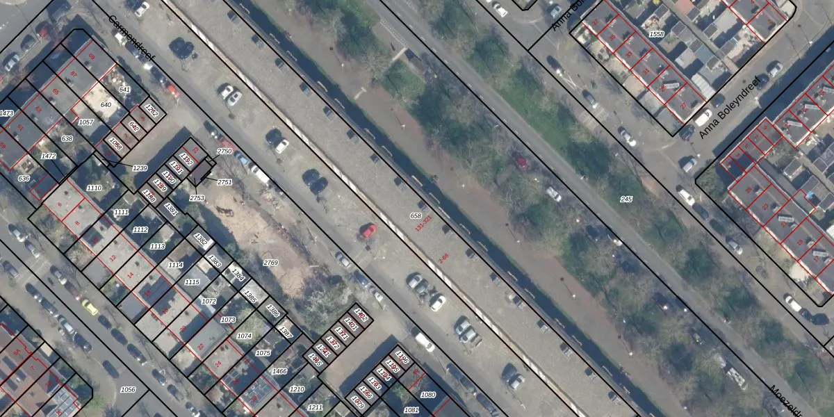 Het perceel waarop Moezeldreef 219 staat heeft een oppervlakte van 1690 m². Dit is een zeer groot perceel. De perceeloppervlakte wordt geregistreerd door het Kadaster. Gedetailleerde informatie over de maten van dit perceel kunt u vinden in het rapport Kadastrale kaart met maatvoering van Moezeldreef 219.