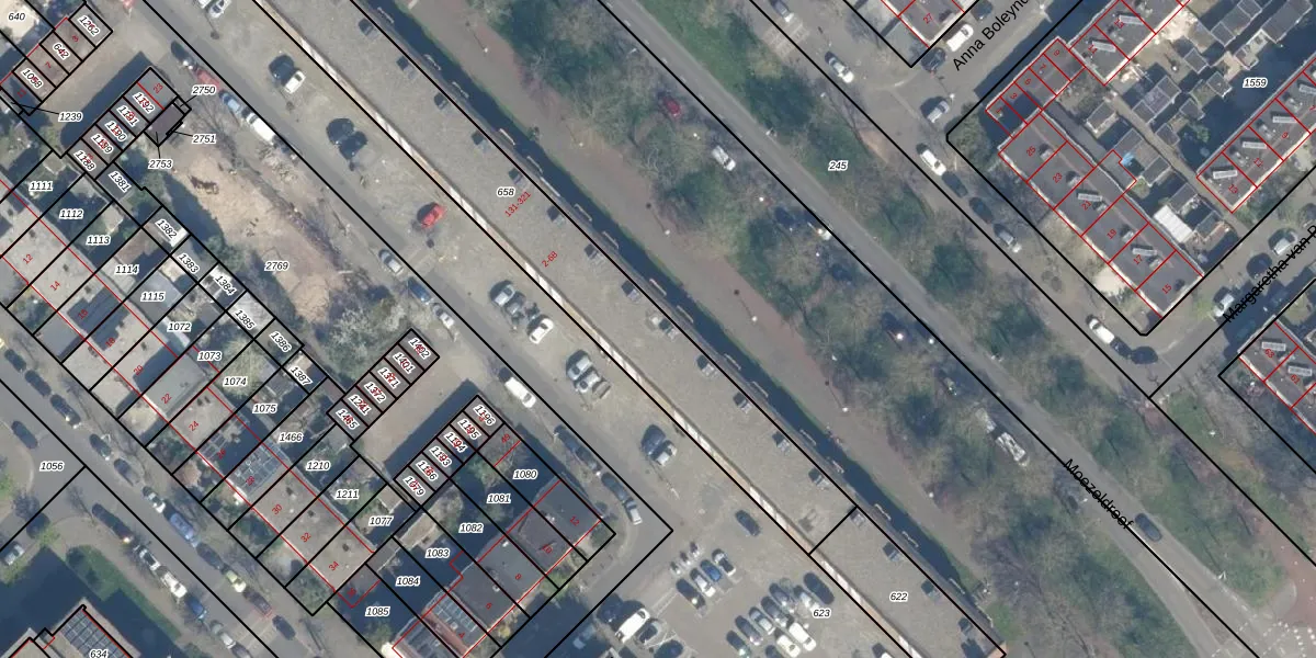 Het perceel waarop Moezeldreef 243 staat heeft een oppervlakte van 1690 m². Dit is een zeer groot perceel. De perceeloppervlakte wordt geregistreerd door het Kadaster. Gedetailleerde informatie over de maten van dit perceel kunt u vinden in het rapport Kadastrale kaart met maatvoering van Moezeldreef 243.