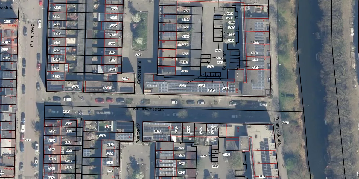 Molukkenstraat 63 is gelegen op kadastraal perceel CTR00C9120. Deze kadastrale aanduiding is uniek en wordt gebruikt door het Kadaster om eigendomsrechten en andere zakelijke rechten vast te leggen. Het perceel maakt onderdeel uit van de kadastrale gemeente Catharijne.