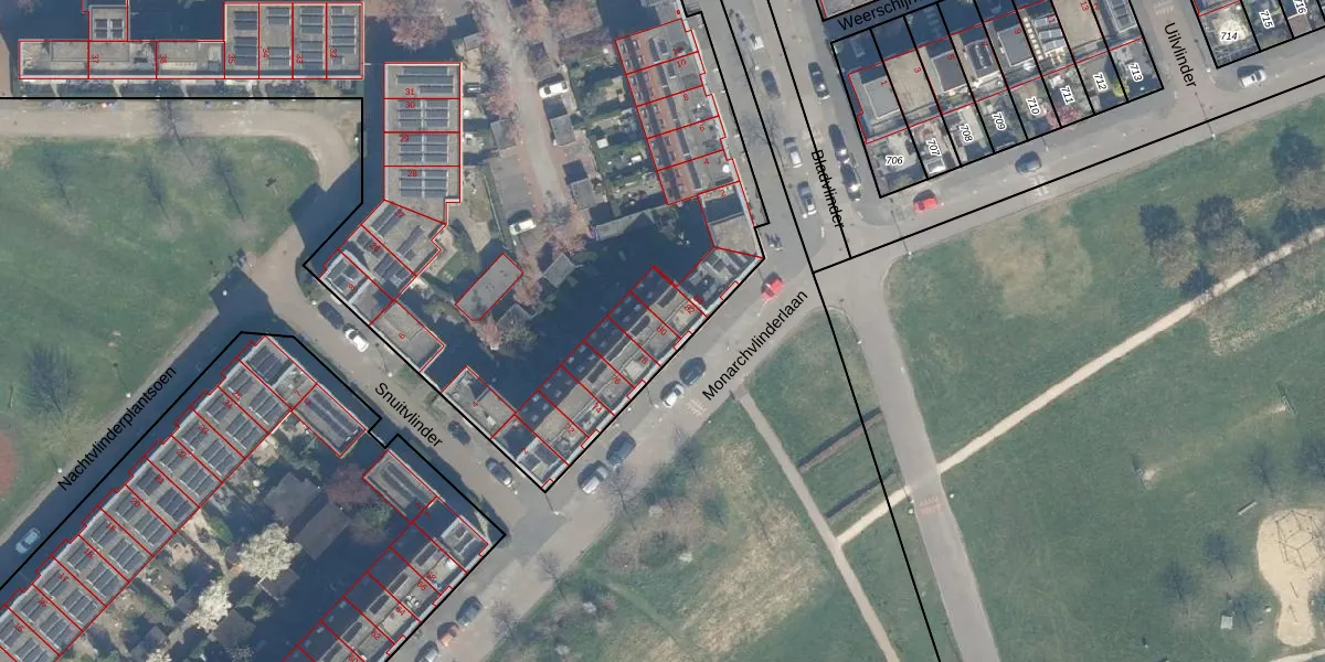 Het perceel waarop Monarchvlinderlaan 80 staat heeft een oppervlakte van 1,6 ha. Dit is een zeer groot perceel. De perceeloppervlakte wordt geregistreerd door het Kadaster. Gedetailleerde informatie over de maten van dit perceel kunt u vinden in het rapport Kadastrale kaart met maatvoering van Monarchvlinderlaan 80.