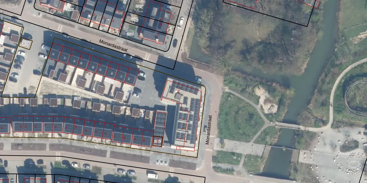Het perceel waarop Monardastraat 44 staat heeft een oppervlakte van 6055 m². Dit is een zeer groot perceel. De perceeloppervlakte wordt geregistreerd door het Kadaster. Gedetailleerde informatie over de maten van dit perceel kunt u vinden in het rapport Kadastrale kaart met maatvoering van Monardastraat 44.