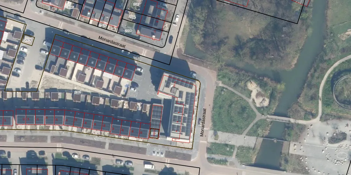 Het perceel waarop Monardastraat 56 staat heeft een oppervlakte van 6055 m². Dit is een zeer groot perceel. De perceeloppervlakte wordt geregistreerd door het Kadaster. Gedetailleerde informatie over de maten van dit perceel kunt u vinden in het rapport Kadastrale kaart met maatvoering van Monardastraat 56.