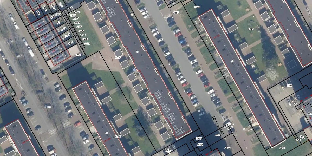 Het perceel waarop Monnetlaan 67-A staat heeft een oppervlakte van 4145 m². Dit is een zeer groot perceel. De perceeloppervlakte wordt geregistreerd door het Kadaster. Gedetailleerde informatie over de maten van dit perceel kunt u vinden in het rapport Kadastrale kaart met maatvoering van Monnetlaan 67-A.