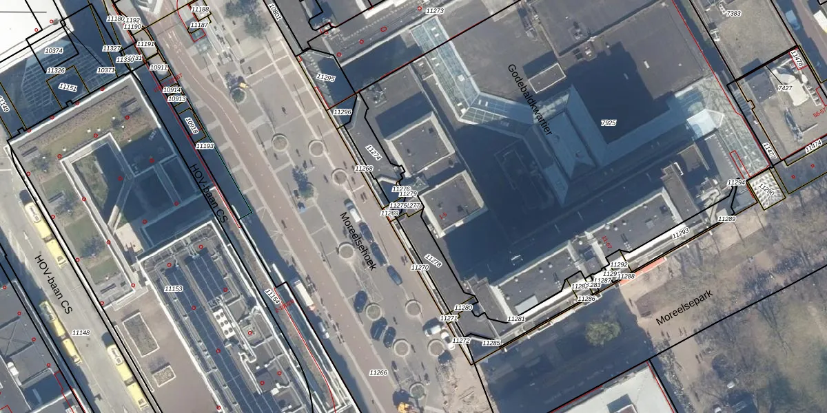 Moreelsehoek 3-A is gelegen op kadastraal perceel CTR00D11277. Deze kadastrale aanduiding is uniek en wordt gebruikt door het Kadaster om eigendomsrechten en andere zakelijke rechten vast te leggen. Het perceel maakt onderdeel uit van de kadastrale gemeente Catharijne.