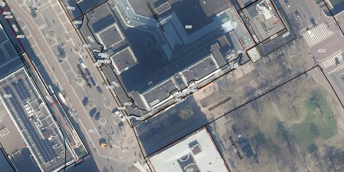 Moreelsepark 65 is gelegen op kadastraal perceel CTR00D7925. Deze kadastrale aanduiding is uniek en wordt gebruikt door het Kadaster om eigendomsrechten en andere zakelijke rechten vast te leggen. Het perceel maakt onderdeel uit van de kadastrale gemeente Catharijne.