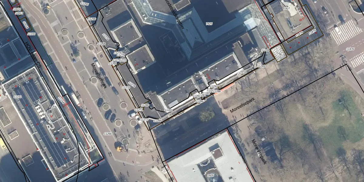 Het perceel waarop Moreelsepark 67 staat heeft een oppervlakte van 5610 m². Dit is een zeer groot perceel. De perceeloppervlakte wordt geregistreerd door het Kadaster. Gedetailleerde informatie over de maten van dit perceel kunt u vinden in het rapport Kadastrale kaart met maatvoering van Moreelsepark 67.