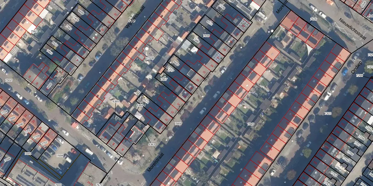 Gebruik de zoekbalk of klik op een perceel voor informatie over de adressen binnen dit perceel.