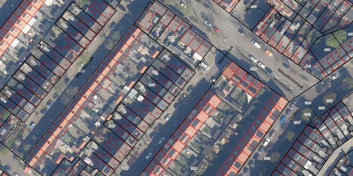 Gebruik de zoekbalk of klik op een perceel voor informatie over de adressen binnen dit perceel.