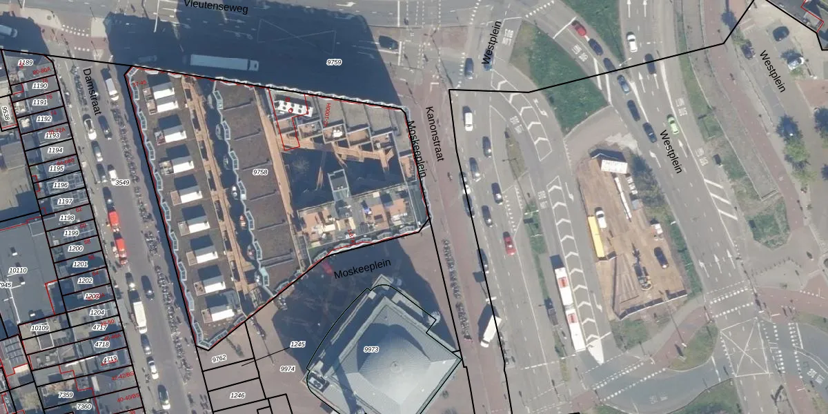 Het perceel waarop Moskeeplein 1-B staat heeft een oppervlakte van 3010 m². Dit is een zeer groot perceel. De perceeloppervlakte wordt geregistreerd door het Kadaster. Gedetailleerde informatie over de maten van dit perceel kunt u vinden in het rapport Kadastrale kaart met maatvoering van Moskeeplein 1-B.