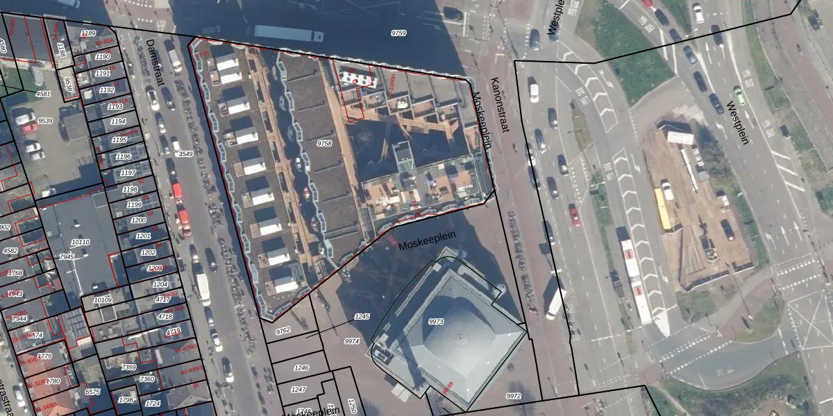 Het perceel waarop Moskeeplein 14 staat heeft een oppervlakte van 3010 m². Dit is een zeer groot perceel. De perceeloppervlakte wordt geregistreerd door het Kadaster. Gedetailleerde informatie over de maten van dit perceel kunt u vinden in het rapport Kadastrale kaart met maatvoering van Moskeeplein 14.