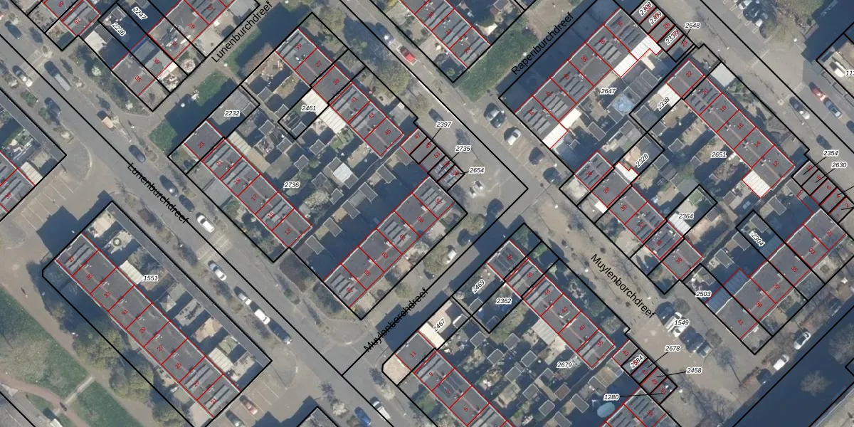 Het perceel waarop Muylenborchdreef 59 staat heeft een oppervlakte van 2282 m². Dit is een zeer groot perceel. De perceeloppervlakte wordt geregistreerd door het Kadaster. Gedetailleerde informatie over de maten van dit perceel kunt u vinden in het rapport Kadastrale kaart met maatvoering van Muylenborchdreef 59.