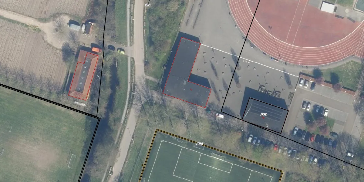 Het perceel waarop Mytylweg 77 staat heeft een oppervlakte van 13,2 ha. Dit is een zeer groot perceel. De perceeloppervlakte wordt geregistreerd door het Kadaster. Gedetailleerde informatie over de maten van dit perceel kunt u vinden in het rapport Kadastrale kaart met maatvoering van Mytylweg 77.
