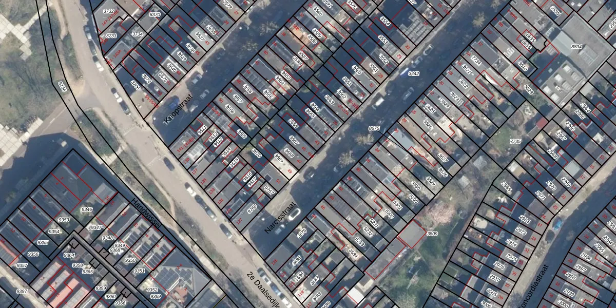 Het perceel waarop Narcisstraat 45 staat heeft een oppervlakte van 76 m². Dit is een klein perceel. De perceeloppervlakte wordt geregistreerd door het Kadaster. Gedetailleerde informatie over de maten van dit perceel kunt u vinden in het rapport Kadastrale kaart met maatvoering van Narcisstraat 45.