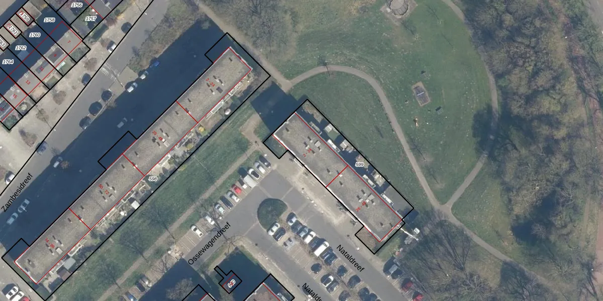 Nataldreef 2 is gelegen op kadastraal perceel UTT00F599. Deze kadastrale aanduiding is uniek en wordt gebruikt door het Kadaster om eigendomsrechten en andere zakelijke rechten vast te leggen. Het perceel maakt onderdeel uit van de kadastrale gemeente Utrecht.