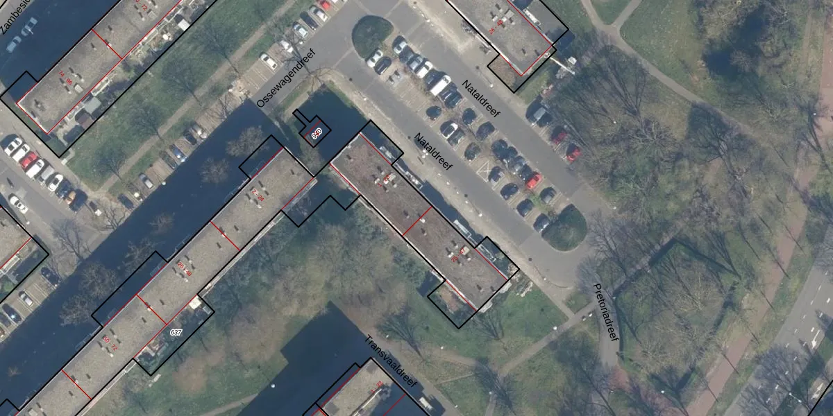 Het perceel waarop Nataldreef 21 staat heeft een oppervlakte van 2262 m². Dit is een zeer groot perceel. De perceeloppervlakte wordt geregistreerd door het Kadaster. Gedetailleerde informatie over de maten van dit perceel kunt u vinden in het rapport Kadastrale kaart met maatvoering van Nataldreef 21.
