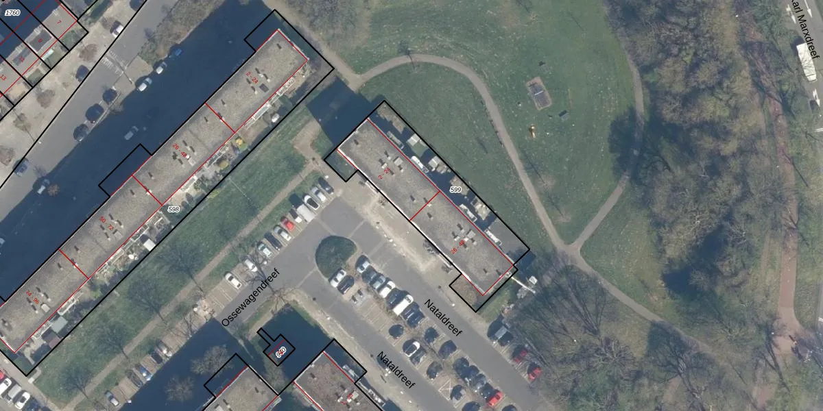 Nataldreef 22 is gelegen op kadastraal perceel UTT00F599. Deze kadastrale aanduiding is uniek en wordt gebruikt door het Kadaster om eigendomsrechten en andere zakelijke rechten vast te leggen. Het perceel maakt onderdeel uit van de kadastrale gemeente Utrecht.