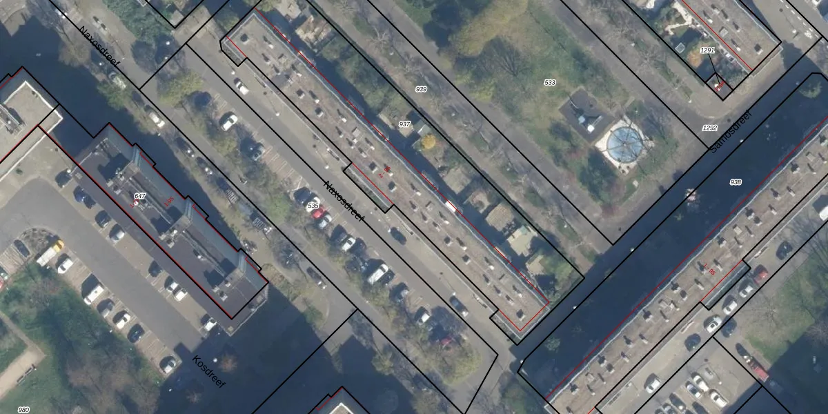 Het perceel waarop Naxosdreef 66 staat heeft een oppervlakte van 2156 m². Dit is een zeer groot perceel. De perceeloppervlakte wordt geregistreerd door het Kadaster. Gedetailleerde informatie over de maten van dit perceel kunt u vinden in het rapport Kadastrale kaart met maatvoering van Naxosdreef 66.