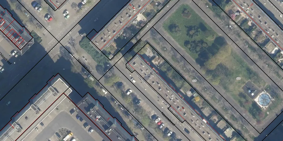 Het perceel waarop Naxosdreef 8 staat heeft een oppervlakte van 2156 m². Dit is een zeer groot perceel. De perceeloppervlakte wordt geregistreerd door het Kadaster. Gedetailleerde informatie over de maten van dit perceel kunt u vinden in het rapport Kadastrale kaart met maatvoering van Naxosdreef 8.