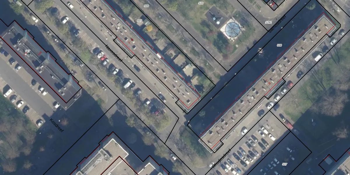 Het perceel waarop Naxosdreef 88 staat heeft een oppervlakte van 2156 m². Dit is een zeer groot perceel. De perceeloppervlakte wordt geregistreerd door het Kadaster. Gedetailleerde informatie over de maten van dit perceel kunt u vinden in het rapport Kadastrale kaart met maatvoering van Naxosdreef 88.