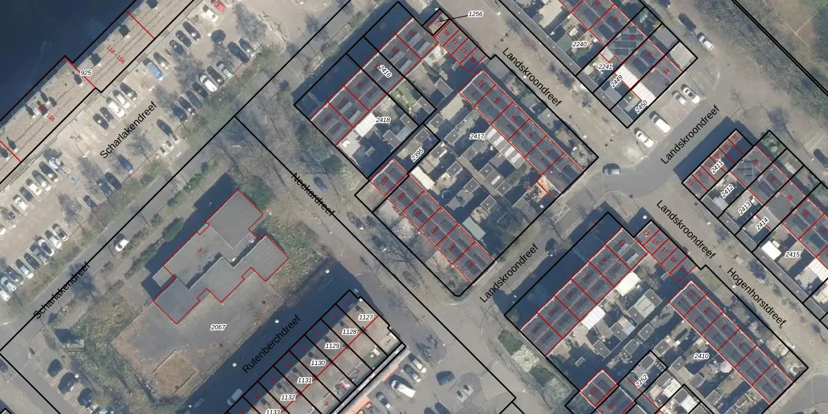 Het perceel waarop Neckardreef 151 staat heeft een oppervlakte van 1940 m². Dit is een zeer groot perceel. De perceeloppervlakte wordt geregistreerd door het Kadaster. Gedetailleerde informatie over de maten van dit perceel kunt u vinden in het rapport Kadastrale kaart met maatvoering van Neckardreef 151.