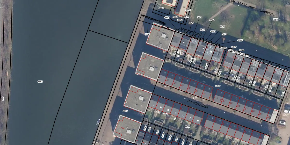 Het perceel waarop Neerlandiakade 36 staat heeft een oppervlakte van 3087 m². Dit is een zeer groot perceel. De perceeloppervlakte wordt geregistreerd door het Kadaster. Gedetailleerde informatie over de maten van dit perceel kunt u vinden in het rapport Kadastrale kaart met maatvoering van Neerlandiakade 36.