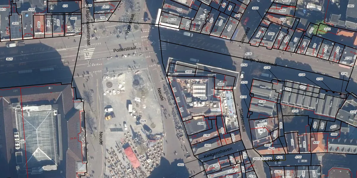 Het perceel waarop Neude 5 staat heeft een oppervlakte van 700 m². Dit is een groot perceel. De perceeloppervlakte wordt geregistreerd door het Kadaster. Gedetailleerde informatie over de maten van dit perceel kunt u vinden in het rapport Kadastrale kaart met maatvoering van Neude 5.