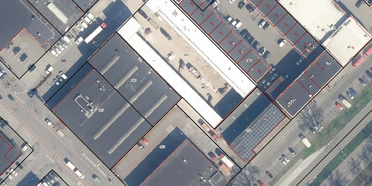 Het perceel waarop Nevadadreef 15-F staat heeft een oppervlakte van 2435 m². Dit is een zeer groot perceel. De perceeloppervlakte wordt geregistreerd door het Kadaster. Gedetailleerde informatie over de maten van dit perceel kunt u vinden in het rapport Kadastrale kaart met maatvoering van Nevadadreef 15-F.