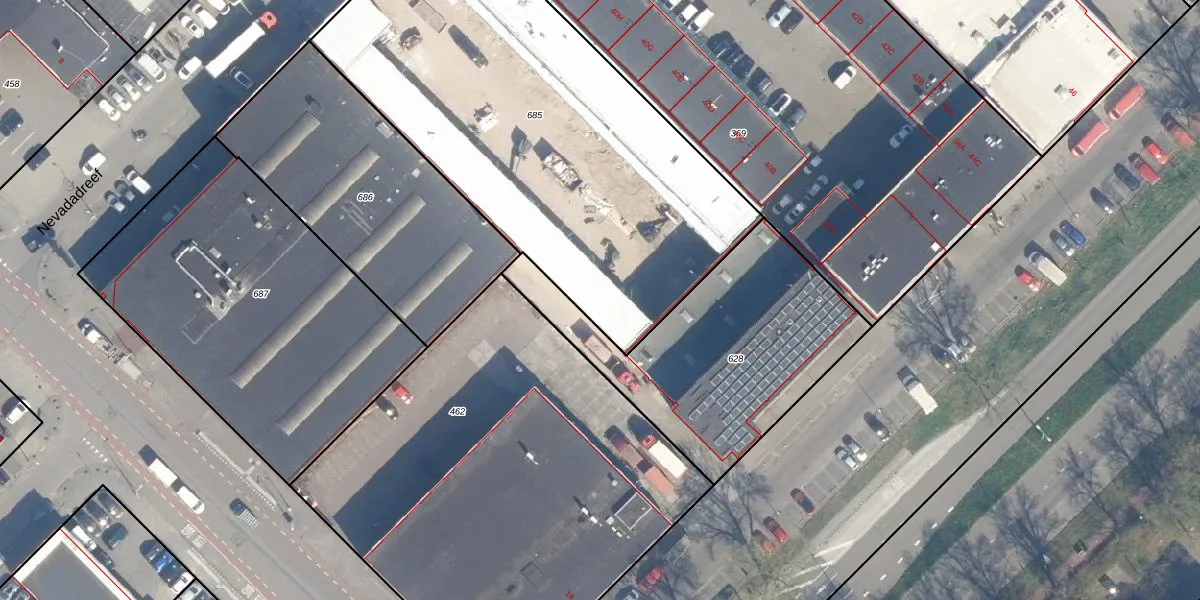 Het perceel waarop Nevadadreef 15-H staat heeft een oppervlakte van 2435 m². Dit is een zeer groot perceel. De perceeloppervlakte wordt geregistreerd door het Kadaster. Gedetailleerde informatie over de maten van dit perceel kunt u vinden in het rapport Kadastrale kaart met maatvoering van Nevadadreef 15-H.