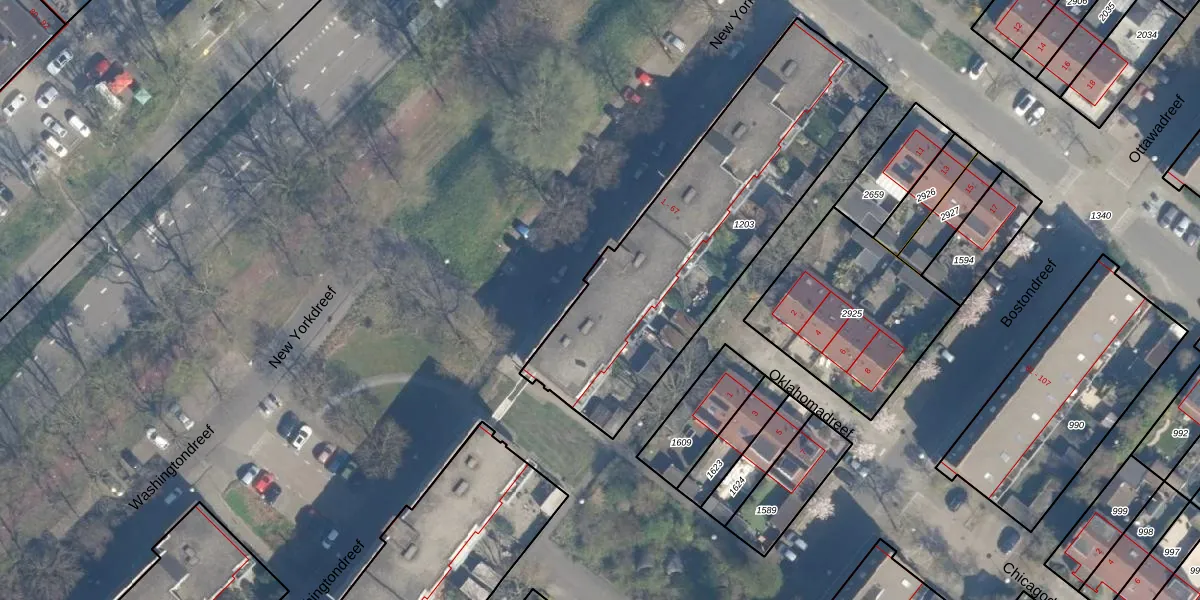 Het perceel waarop New Yorkdreef 3 staat heeft een oppervlakte van 1433 m². Dit is een zeer groot perceel. De perceeloppervlakte wordt geregistreerd door het Kadaster. Gedetailleerde informatie over de maten van dit perceel kunt u vinden in het rapport Kadastrale kaart met maatvoering van New Yorkdreef 3.