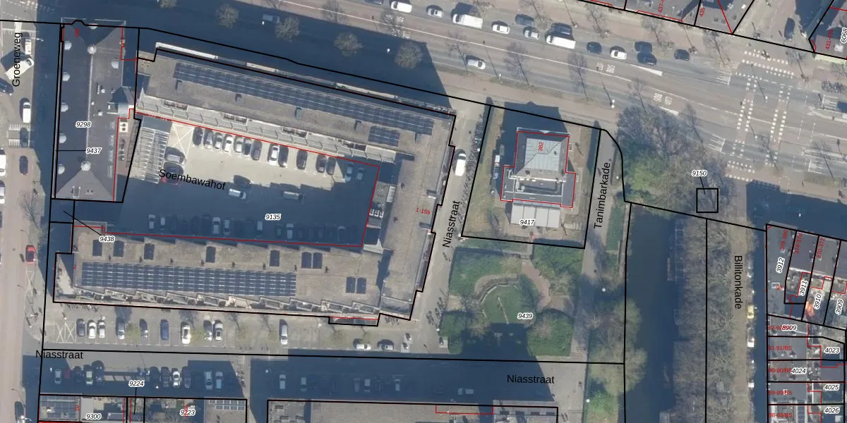 Het perceel waarop Niasstraat 87 staat heeft een oppervlakte van 4400 m². Dit is een zeer groot perceel. De perceeloppervlakte wordt geregistreerd door het Kadaster. Gedetailleerde informatie over de maten van dit perceel kunt u vinden in het rapport Kadastrale kaart met maatvoering van Niasstraat 87.