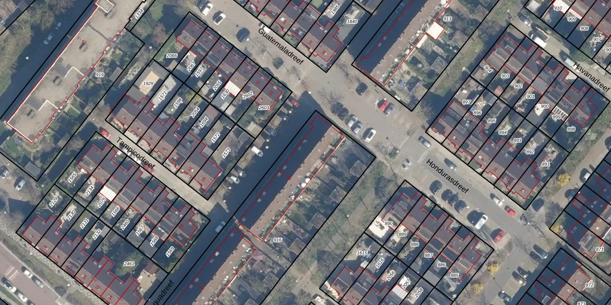 Het perceel waarop Nicaraguadreef 41 staat heeft een oppervlakte van 2276 m². Dit is een zeer groot perceel. De perceeloppervlakte wordt geregistreerd door het Kadaster. Gedetailleerde informatie over de maten van dit perceel kunt u vinden in het rapport Kadastrale kaart met maatvoering van Nicaraguadreef 41.