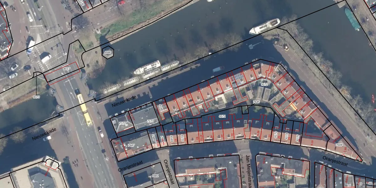 Het perceel waarop Nieuwekade 233 staat heeft een oppervlakte van 1770 m². Dit is een zeer groot perceel. De perceeloppervlakte wordt geregistreerd door het Kadaster. Gedetailleerde informatie over de maten van dit perceel kunt u vinden in het rapport Kadastrale kaart met maatvoering van Nieuwekade 233.