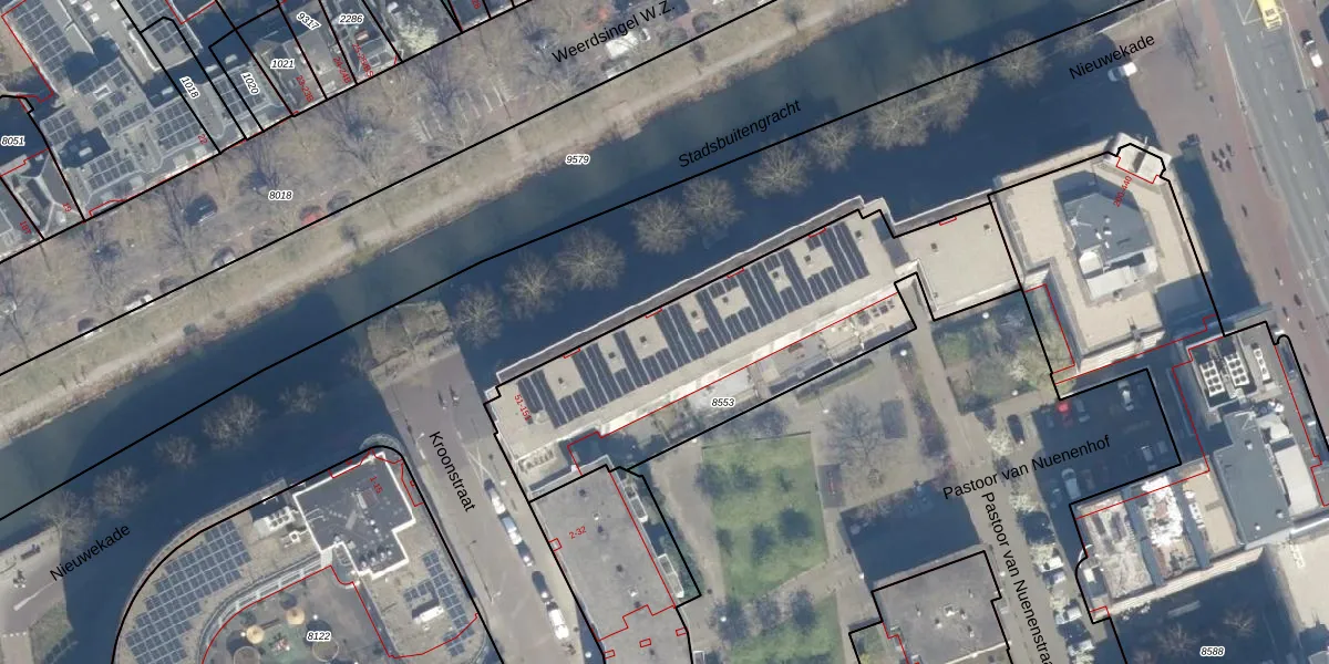 Het perceel waarop Nieuwekade 73 staat heeft een oppervlakte van 1470 m². Dit is een zeer groot perceel. De perceeloppervlakte wordt geregistreerd door het Kadaster. Gedetailleerde informatie over de maten van dit perceel kunt u vinden in het rapport Kadastrale kaart met maatvoering van Nieuwekade 73.