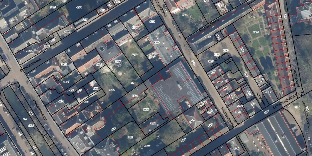Het perceel waarop het adres ligt is UTT00-B-5325. De afkorting 'UTT00' staat voor kadastrale gemeente Utrecht. Het perceel is 1228 m² groot. Dat is kleiner dan de gemiddelde perceeloppervlakte in Utrecht, dat op 1438,48 m² ligt. Het grootste perceel in de kadastrale gemeente is 90,1 ha. Het kleinste perceel heeft een oppervlakte van 0 m². Op het perceel liggen in totaal 15 adressen. In de Basisregistratie Kadaster (BRK) werden de grenzen van het perceel geregistreerd op 13-02-2007.