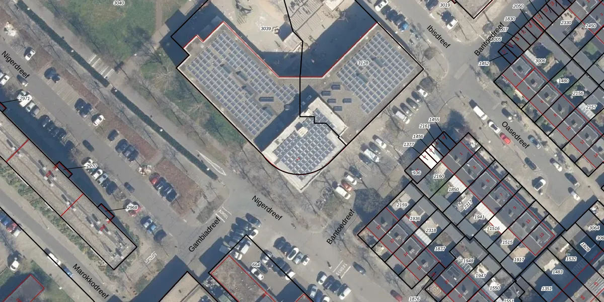 Het perceel waarop Nigerdreef 8 staat heeft een oppervlakte van 2068 m². Dit is een zeer groot perceel. De perceeloppervlakte wordt geregistreerd door het Kadaster. Gedetailleerde informatie over de maten van dit perceel kunt u vinden in het rapport Kadastrale kaart met maatvoering van Nigerdreef 8.
