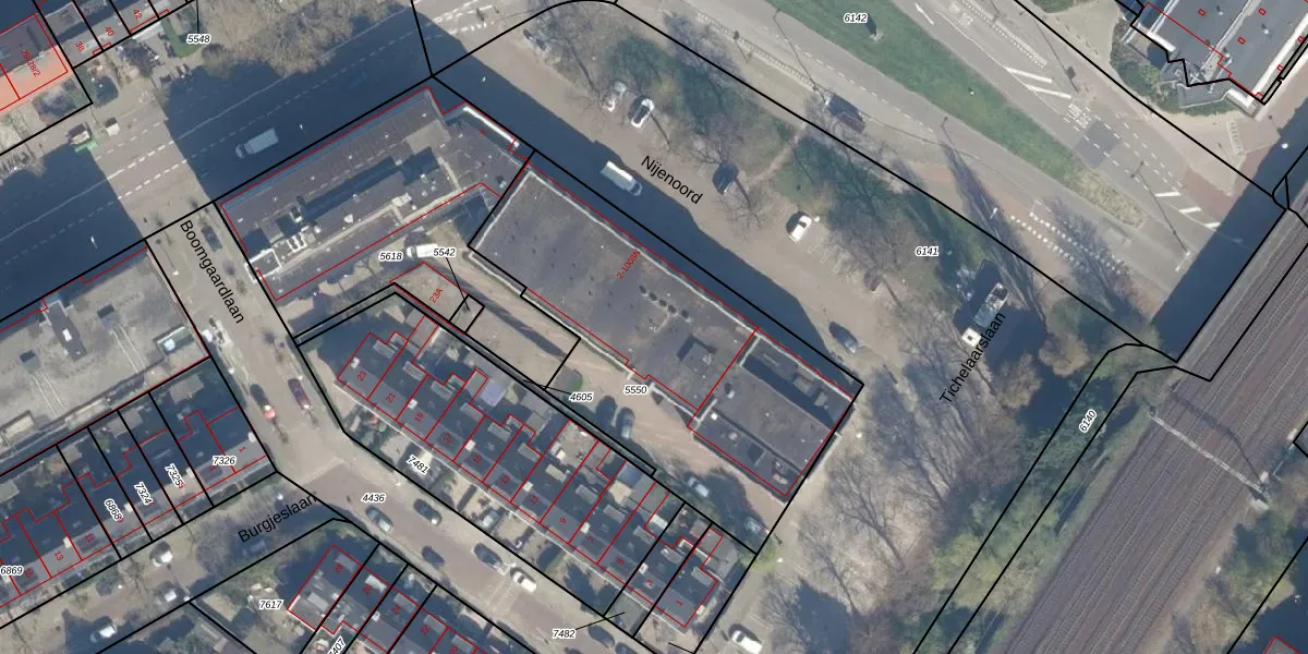 Het perceel waarop Nijenoord 2-013 staat heeft een oppervlakte van 1615 m². Dit is een zeer groot perceel. De perceeloppervlakte wordt geregistreerd door het Kadaster. Gedetailleerde informatie over de maten van dit perceel kunt u vinden in het rapport Kadastrale kaart met maatvoering van Nijenoord 2-013.