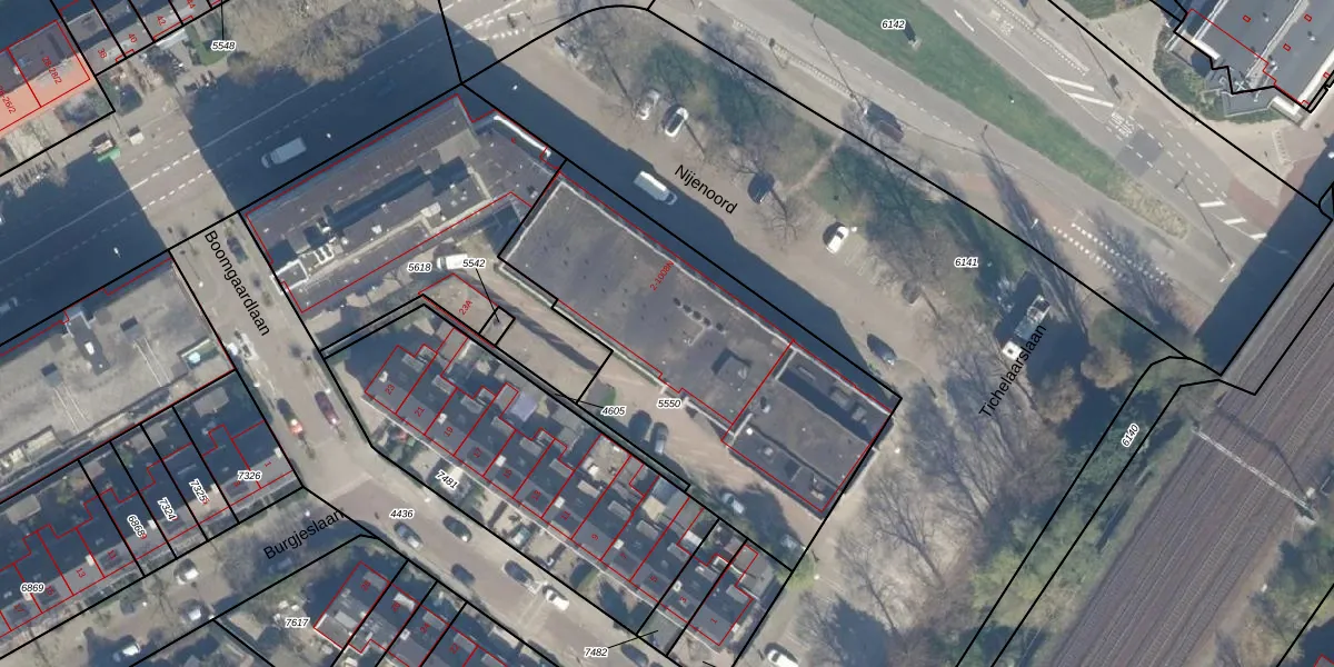 Het perceel waarop Nijenoord 2-018 staat heeft een oppervlakte van 1615 m². Dit is een zeer groot perceel. De perceeloppervlakte wordt geregistreerd door het Kadaster. Gedetailleerde informatie over de maten van dit perceel kunt u vinden in het rapport Kadastrale kaart met maatvoering van Nijenoord 2-018.