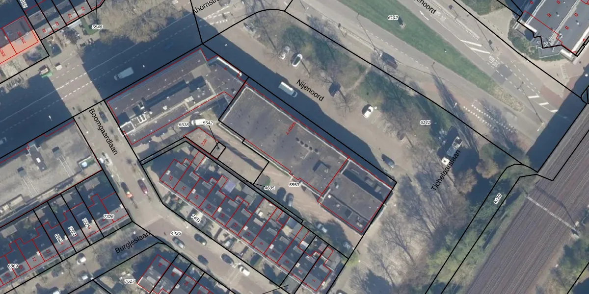 Het perceel waarop Nijenoord 2-028 staat heeft een oppervlakte van 1615 m². Dit is een zeer groot perceel. De perceeloppervlakte wordt geregistreerd door het Kadaster. Gedetailleerde informatie over de maten van dit perceel kunt u vinden in het rapport Kadastrale kaart met maatvoering van Nijenoord 2-028.