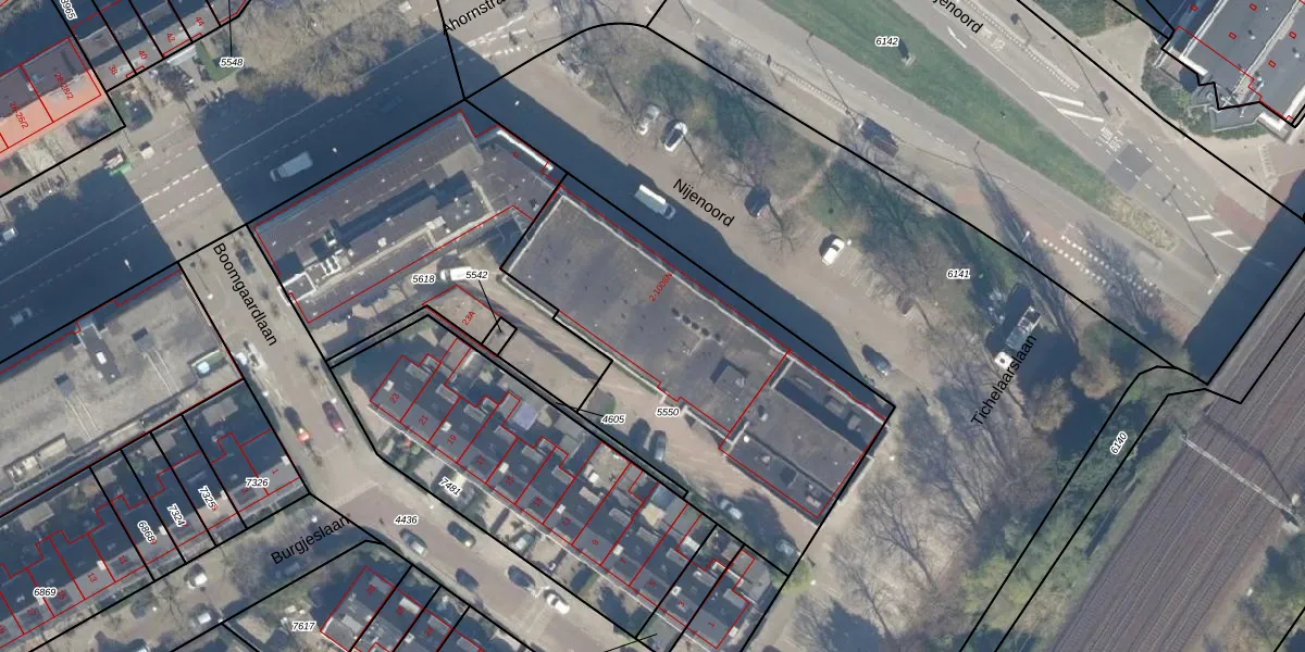Het perceel waarop Nijenoord 2-109 staat heeft een oppervlakte van 1615 m². Dit is een zeer groot perceel. De perceeloppervlakte wordt geregistreerd door het Kadaster. Gedetailleerde informatie over de maten van dit perceel kunt u vinden in het rapport Kadastrale kaart met maatvoering van Nijenoord 2-109.