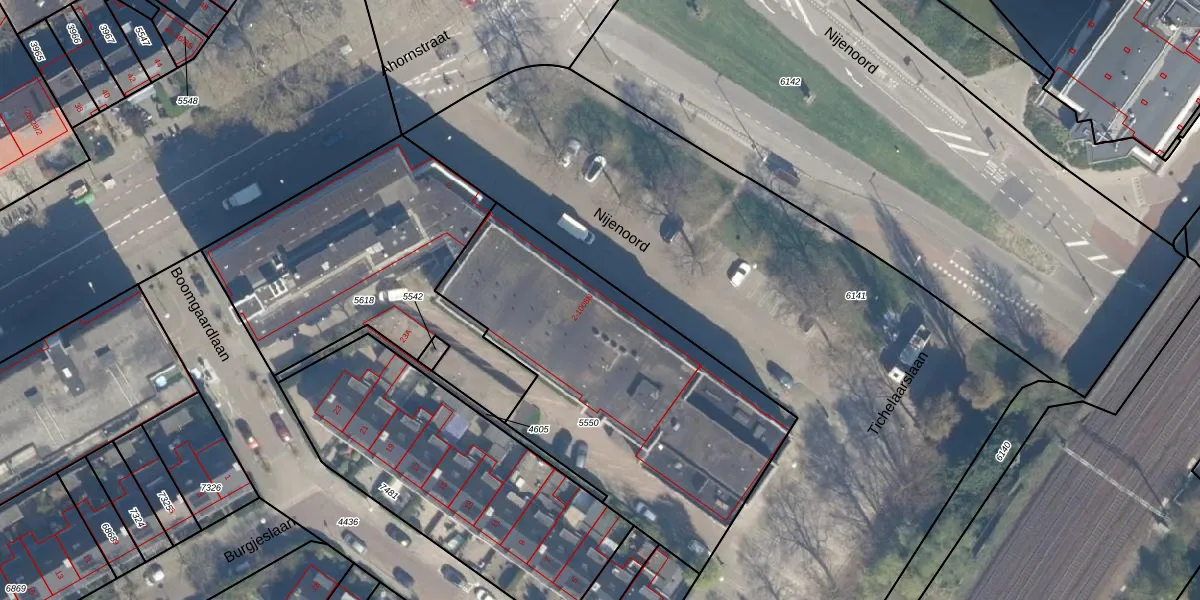 Het perceel waarop Nijenoord 2-130 staat heeft een oppervlakte van 1615 m². Dit is een zeer groot perceel. De perceeloppervlakte wordt geregistreerd door het Kadaster. Gedetailleerde informatie over de maten van dit perceel kunt u vinden in het rapport Kadastrale kaart met maatvoering van Nijenoord 2-130.