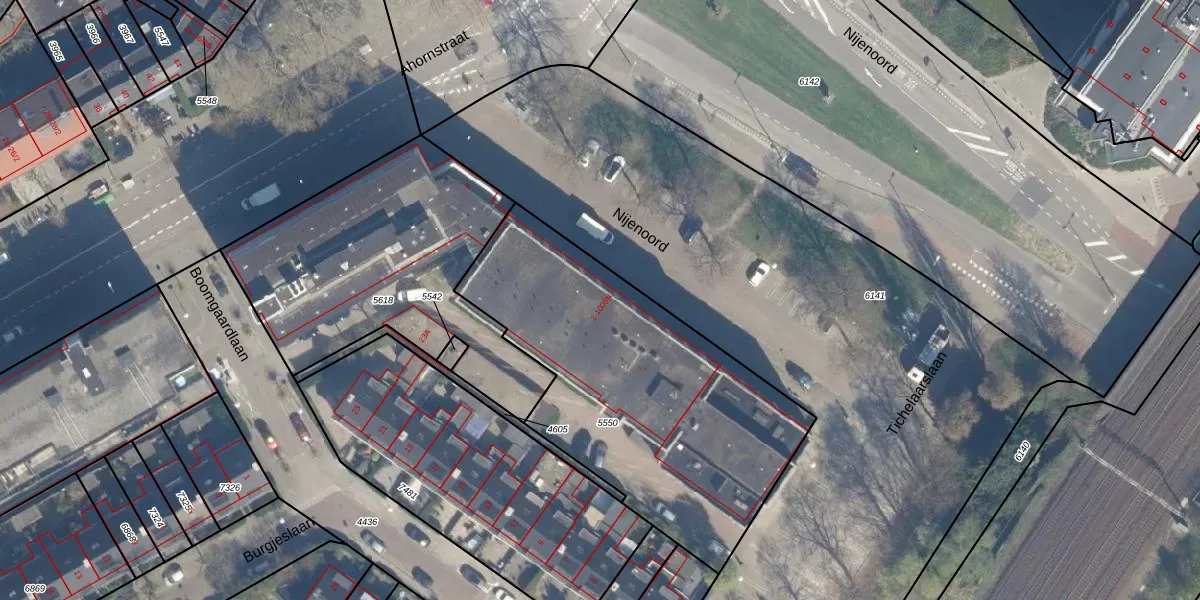 Het perceel waarop Nijenoord 2-201 staat heeft een oppervlakte van 1615 m². Dit is een zeer groot perceel. De perceeloppervlakte wordt geregistreerd door het Kadaster. Gedetailleerde informatie over de maten van dit perceel kunt u vinden in het rapport Kadastrale kaart met maatvoering van Nijenoord 2-201.