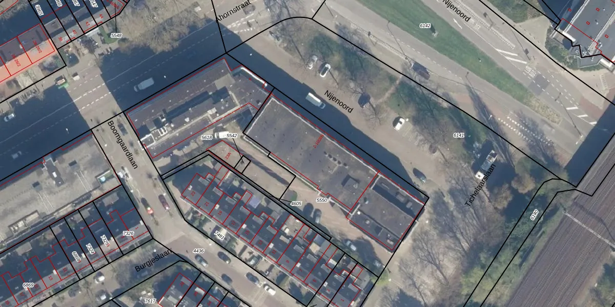 Het perceel waarop Nijenoord 2-208 staat heeft een oppervlakte van 1615 m². Dit is een zeer groot perceel. De perceeloppervlakte wordt geregistreerd door het Kadaster. Gedetailleerde informatie over de maten van dit perceel kunt u vinden in het rapport Kadastrale kaart met maatvoering van Nijenoord 2-208.