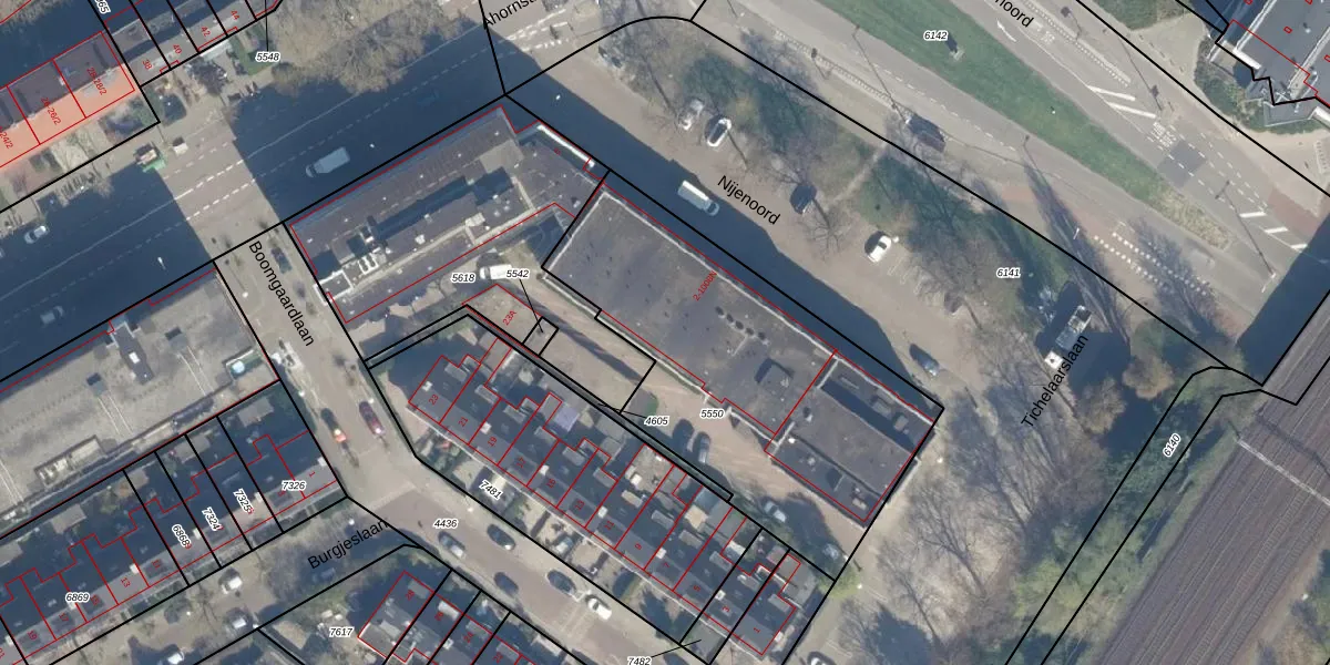 Het perceel waarop Nijenoord 2-212 staat heeft een oppervlakte van 1615 m². Dit is een zeer groot perceel. De perceeloppervlakte wordt geregistreerd door het Kadaster. Gedetailleerde informatie over de maten van dit perceel kunt u vinden in het rapport Kadastrale kaart met maatvoering van Nijenoord 2-212.