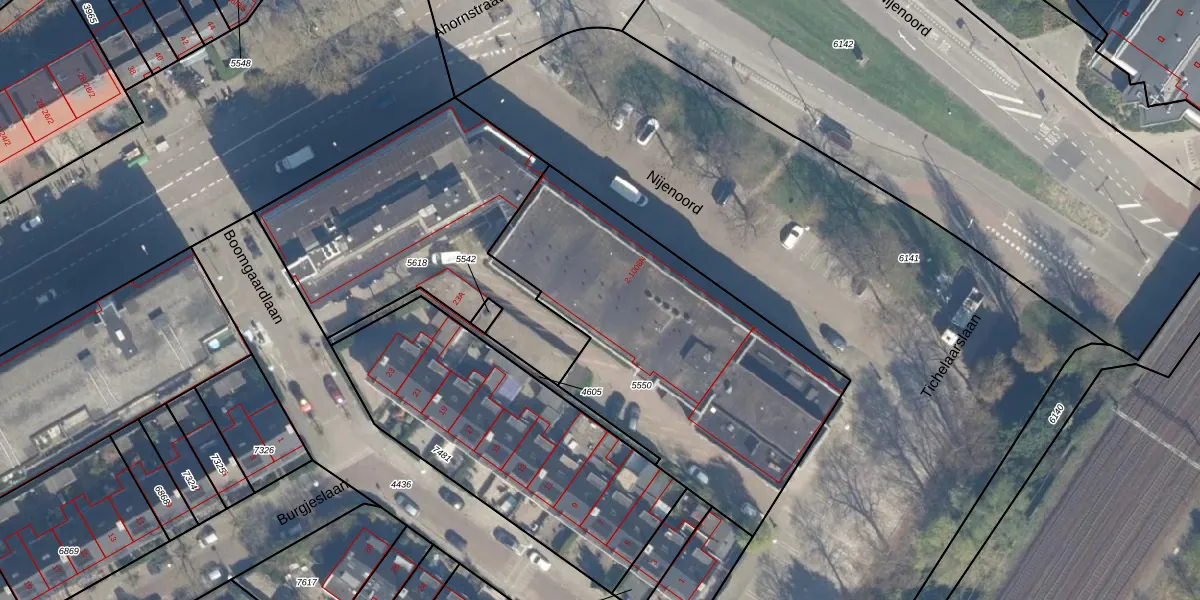 Het perceel waarop Nijenoord 2-219 staat heeft een oppervlakte van 1615 m². Dit is een zeer groot perceel. De perceeloppervlakte wordt geregistreerd door het Kadaster. Gedetailleerde informatie over de maten van dit perceel kunt u vinden in het rapport Kadastrale kaart met maatvoering van Nijenoord 2-219.