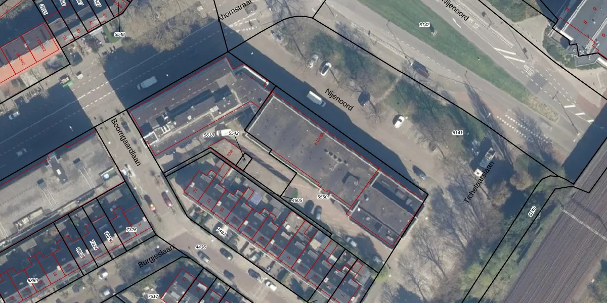 Het perceel waarop Nijenoord 2-220 staat heeft een oppervlakte van 1615 m². Dit is een zeer groot perceel. De perceeloppervlakte wordt geregistreerd door het Kadaster. Gedetailleerde informatie over de maten van dit perceel kunt u vinden in het rapport Kadastrale kaart met maatvoering van Nijenoord 2-220.