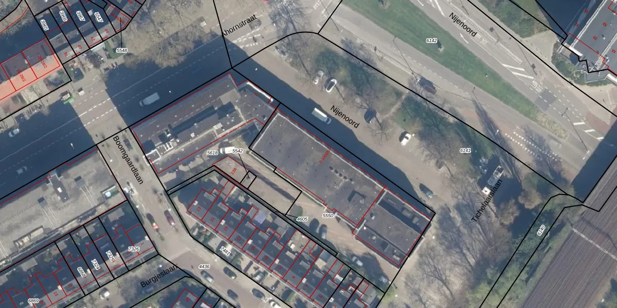 Het perceel waarop Nijenoord 2-318 staat heeft een oppervlakte van 1615 m². Dit is een zeer groot perceel. De perceeloppervlakte wordt geregistreerd door het Kadaster. Gedetailleerde informatie over de maten van dit perceel kunt u vinden in het rapport Kadastrale kaart met maatvoering van Nijenoord 2-318.