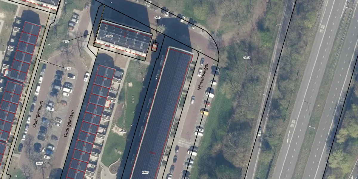 Nijeveldsingel 1-B is gelegen op kadastraal perceel UTT00P6166. Deze kadastrale aanduiding is uniek en wordt gebruikt door het Kadaster om eigendomsrechten en andere zakelijke rechten vast te leggen. Het perceel maakt onderdeel uit van de kadastrale gemeente Utrecht.