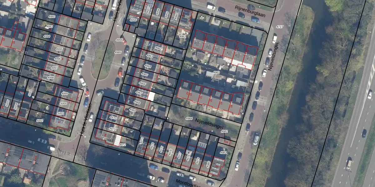 Nijeveldsingel 23 is gelegen op kadastraal perceel UTT00P4983. Deze kadastrale aanduiding is uniek en wordt gebruikt door het Kadaster om eigendomsrechten en andere zakelijke rechten vast te leggen. Het perceel maakt onderdeel uit van de kadastrale gemeente Utrecht.