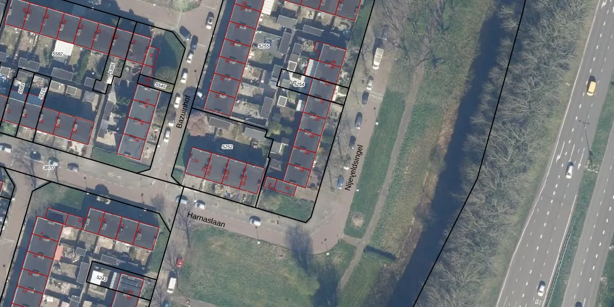 Nijeveldsingel 54 is gelegen op kadastraal perceel UTT00P5255. Deze kadastrale aanduiding is uniek en wordt gebruikt door het Kadaster om eigendomsrechten en andere zakelijke rechten vast te leggen. Het perceel maakt onderdeel uit van de kadastrale gemeente Utrecht.
